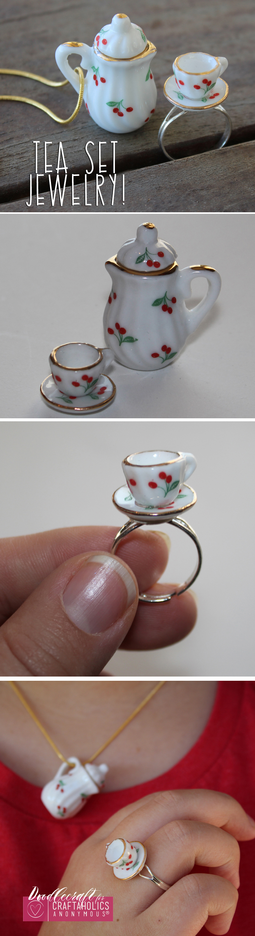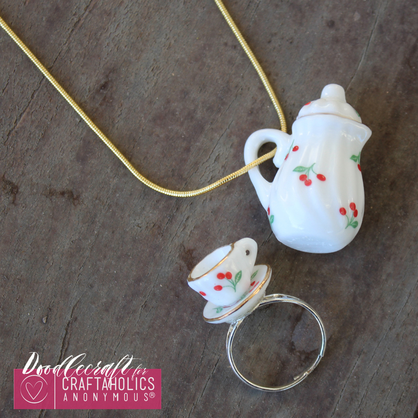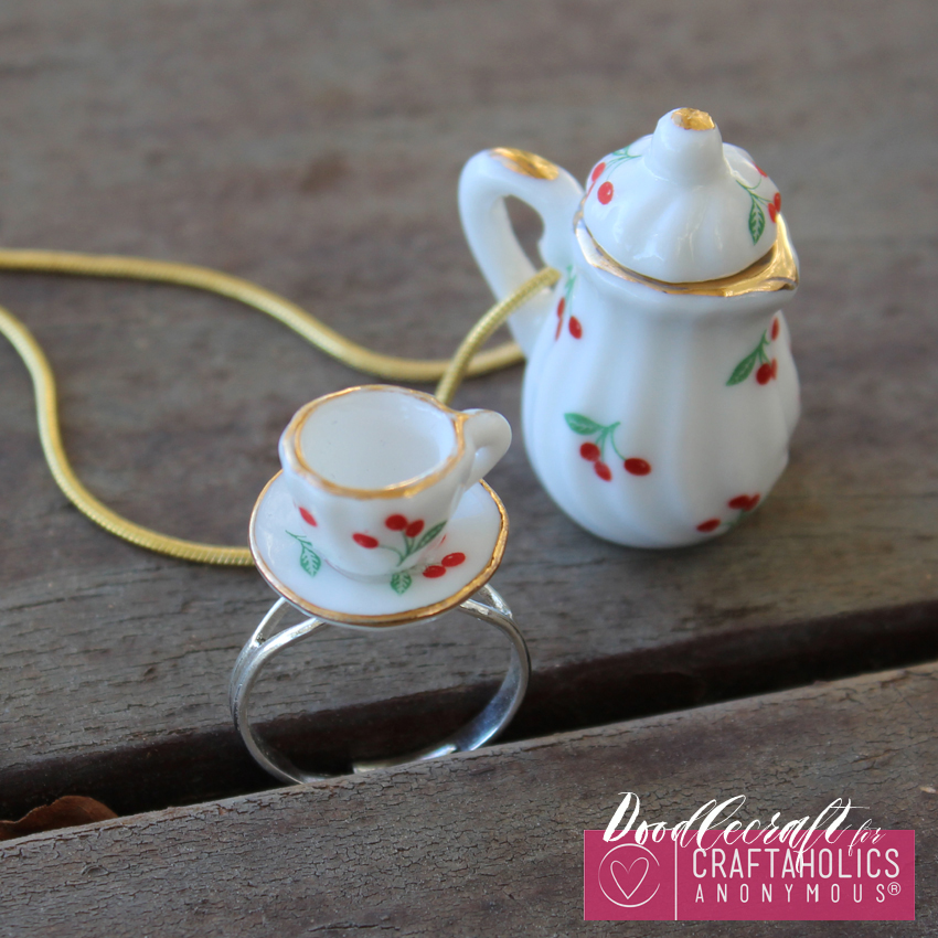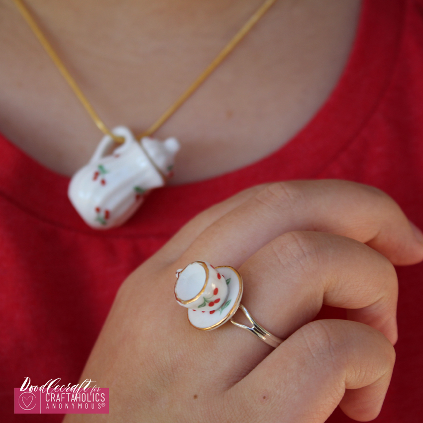 Here is how to turn an adorable Tea Set into a ring and a pendant! This tea set jewelry is easy and a cute gift idea!