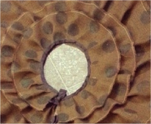 10. Next cut a strip of ribbon big enough to go around the inside of the center circle. Hot glue half of the ribbon on the top side of the skirt. Then fold it over and hot glue to the back of the skirt.