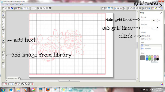 i like to show the gridlines when i am designing. to view with gridlines, click on the Grid Menu shown above. i like to set my gridlines to be 1″ with 1/2 inch sub-lines. then click Show Grid.