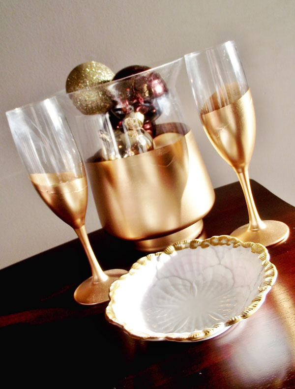 Gold Dipped Champagne Flutes from Gray House on the Left.
