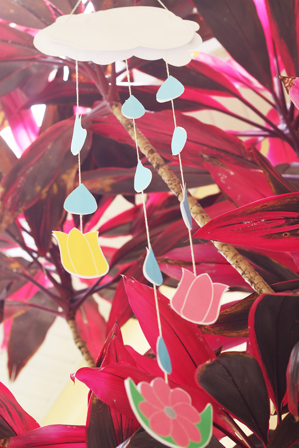 April Showers bring May Flowers!! Here in Florida many of our flowers have started blooming, which got me thinking that it would be fun to make a cute April Showers mobile! It’s a fun project you can do with the kids to teach about seasons, you can make these for baby shower decorations, or to add a little color in a nursery corner!