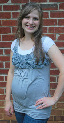 You look lovely! The shirt is very flattering. When I was pregnant with our twins people felt so free to comment on my size. Some thought I was so tiny for twins and some thought I must have back problems for sure. Blah! Any remark about my size made me cry. I wanted the babies to be growing and I didn't want to hear that I was small (making me think the twins weren't growing). Of course it's all worth it. I just love babies! And ours are the best :)