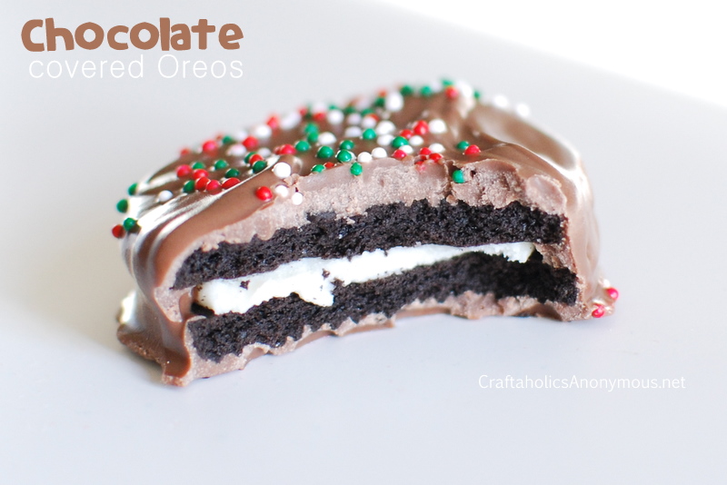 we made chocolate covered oreos. {which was a lot easier than i thought it would be. and that’s coming from someone whose kitchen skills are very lacking!} G-man, my 3 yo, loved helping with the sprinkles.