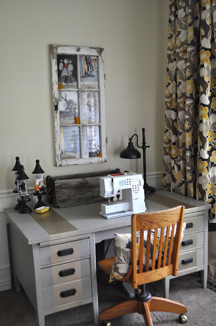 Thank you for sharing your wonderful room, Cheri! Loved it! I think my favorite parts are the apothecary jars holding thread and your fabulous curtains! Make sure to stop by Cheri’s blog, I am Momma Hear me Roar and say hi!
