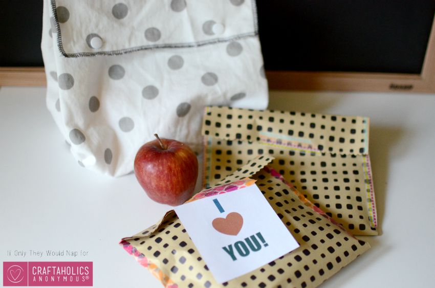If you want to sew your own lunch sack to tuck your notes into, you can find that tutorial on my blog, along with other fun DIYs!
