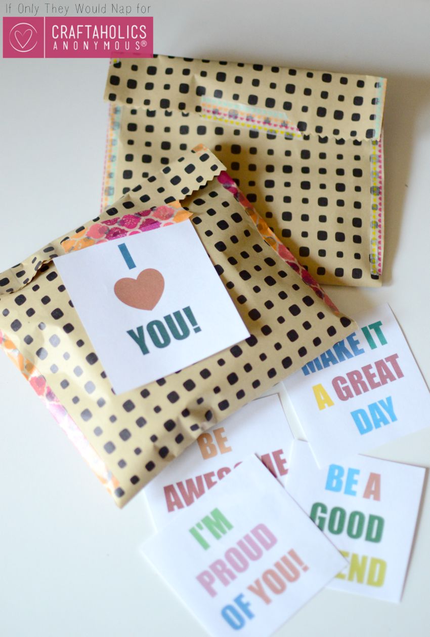 4. Tape the bag closed and tape on a Lunchbox Note and slip it into your kiddo’s lunchbox!