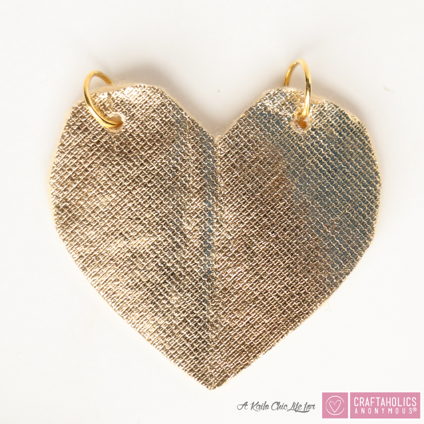 Once you have filled in your felt heart with pompoms, lay it flat to dry overnight. Once it is dry, simply thread it on your necklace chain through the jump rings and your done!
