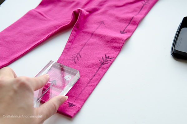 6. Then press your stamp onto your leggings in the pattern you’d like. You could totally mix and match stamps for your own design.