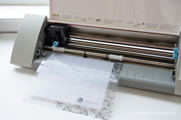*Note: If you are using a Cameo, you’ll need to move over the white rubber roller to the 8″ setting, as shown above.