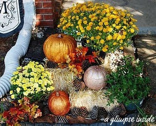 Allison at A Glimpse Inside staged her outdoor living perfectly for fall!