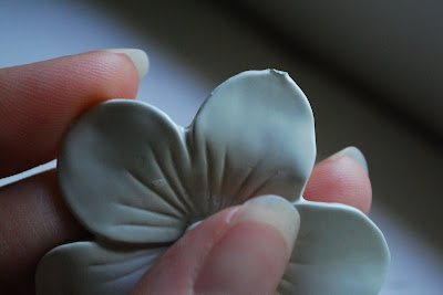 next hot glue the elastic to the center of the flower. i tested the hot glue to make sure it would create a good hold with my pendant. my pendant is somewhat porous and so it took well to the hot glue. but you may want to check your pendant to see if hot glue will work or not. if it doesn’t, try super glue or gorilla glue.