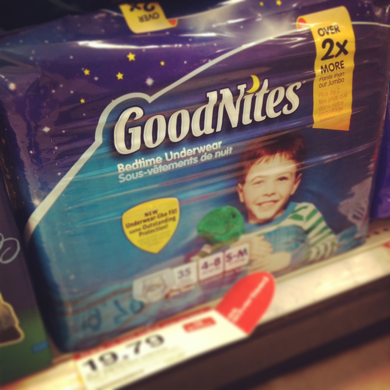 I understand your pain. My 3yr old boy also has to wear a sleep diaper.