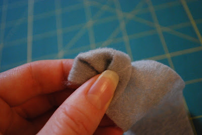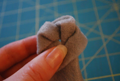while pinching the first circle in place, twist the felt around to create a little larger circle behind the first circle. pinch in place to hold together.