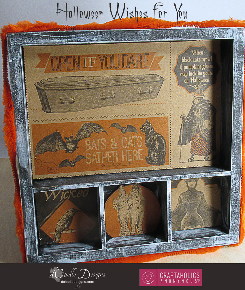- Fussy cut the Halloween Wishes for You! tag and glue along the top edge of the tray.