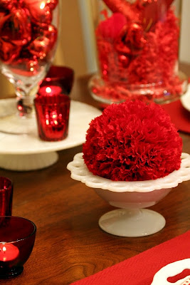 I have those same milkglass compotes, so I am excited to make the carnation centerpiece. So cute!!! Thanks for sharing. Happy Valentine's Day. Love & blessings from NC!