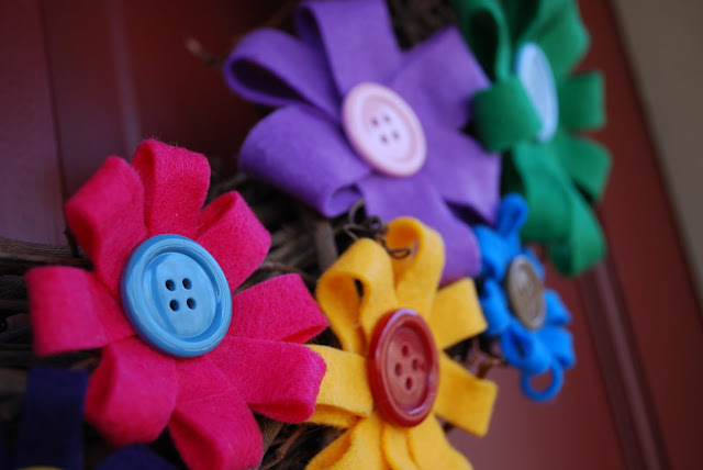 i don’t know about you, but i’m tired of winter. very tired. so i got the itchin for some color. something that screamed {in a very polite, but firm way} Spring! to hopefully give Mother Nature the nudge. do you think these felt flowers did the trick? i kinda think so. well, at least it made me feel better!