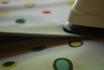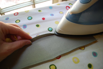 iron your fabric strip 1/4″ over on the long side of the fabric.