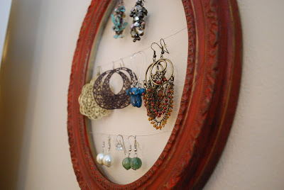 I love your earring holder! I've wanted the perfect frame to do that with to hang by my bathroom sink.