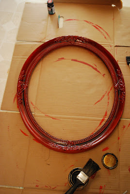 I bought an identical oval frame from an estate sale a few months ago! LOVE IT! The red in your room really pops!