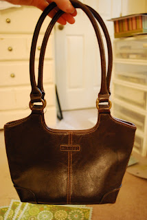 Anyways, I have to give you a little “Bag History”. I got it as a newly wed in Idaho on one of the hub’s well thought out “dates” to the local thrift store (we were hard up for money…. just like now!! lol). We paid a whoppin $1 for it. I used it for several years, but I have since moved on to bigger bags (read: diaper bag). Anyways, sorry for all the chatter, here it is!!