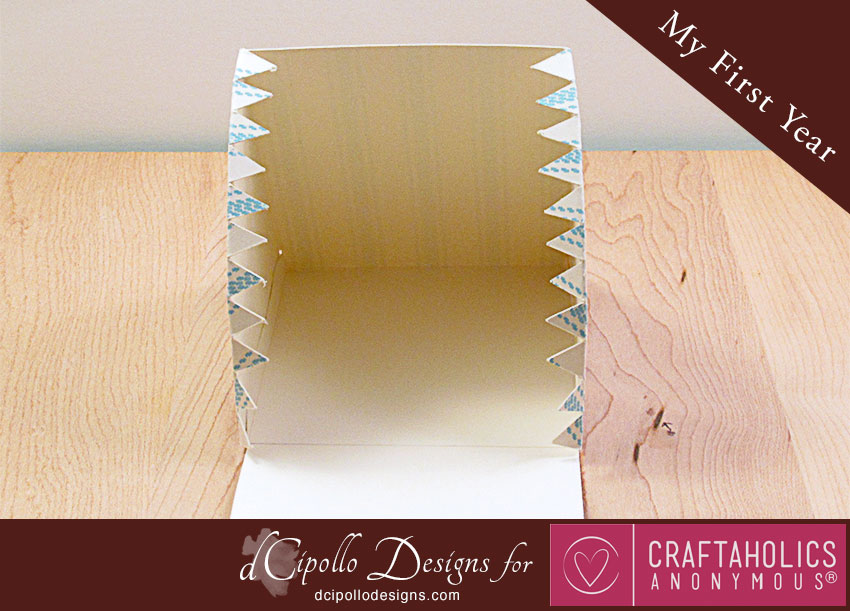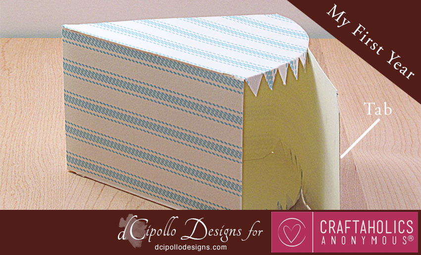 - To close the Cake, fold over and glue the last tab, adjusting the fold line as needed for the thickness of your card stock.