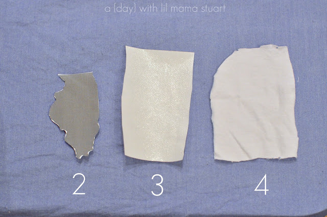 1. Iron fabric for your state to Heat’n Bond (following the instructions that came with it – wrong side of fabric first!).