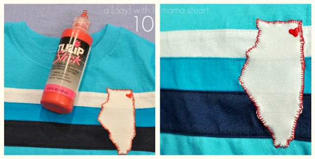 2. Sew all the way around your state. Make sure you don’t sew the front and back of shirt together. Removing those stitches = not fun.