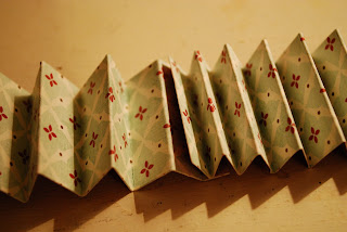 Then place the end of one accordion strip onto the end of the other strip. Overlapping one or two folds. Use your double sided adhesive to hold in place. I suppose you could use your hot glue gun for this as well, but I’d recommend double sided adhesive.