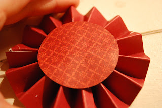 Put hot glue all around the center trying to get inside the accordion grooves as best as you can. (I tried other adhesives for this step, but this is what I found worked best for me. I tried glue dots and double sided adhesive strips, but nothing held for longer than 5 minutes. If you have something that works better, let me know)