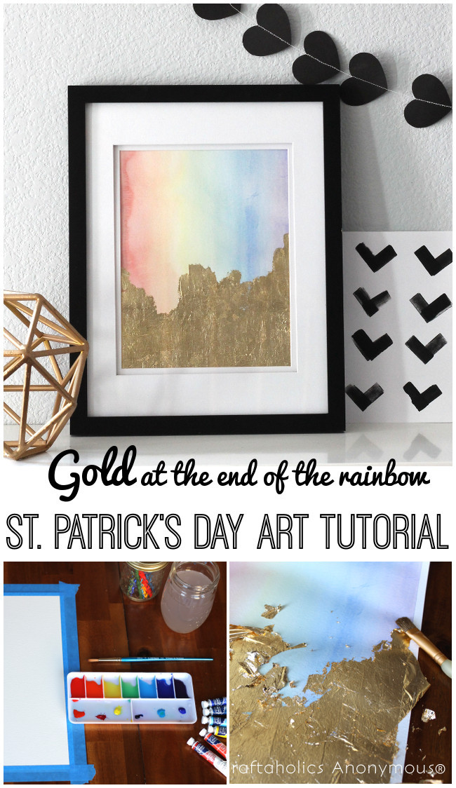 A few weeks ago I decided that I was absolutely not going to do any St. Patrick’s Day projects this year. I just couldn’t get very excited about the green and the shamrocks, BUT then I remembered the whole gold at the end of the rainbow thing, and I changed my mind. I have completely bought into the gold trend, and I just couldn’t pass up the chance to play around with gold and rainbows combined.