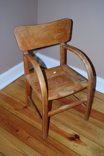 Just last week, the hubs, lil stinker, and I ventured over to one of my fav thrift stores, the “Love of Jesus”, and picked up this beauty for $7. Little pricey, maybe, but I think it has great potential! And I loved the design of it with the curved arm rests. Hopefully it turns out to be a cute chair for my lil stinker.