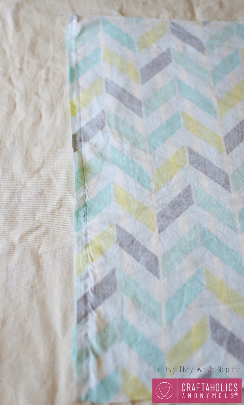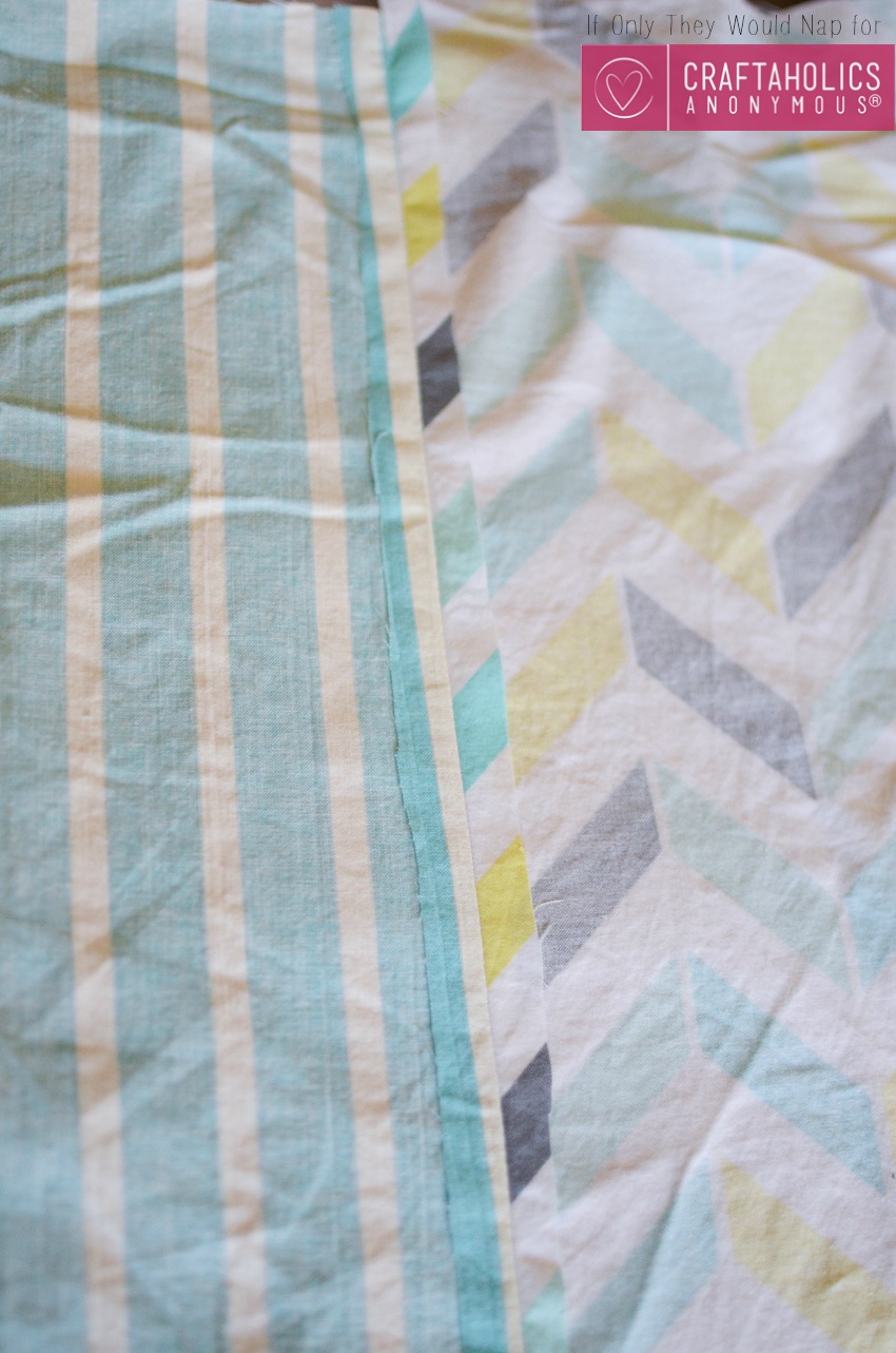 4. Pin or clip the panels and the backing fabric wrong sides together. This is a good time to check that the front and the back are the same size. Then sew the two pieces together along the edges using a straight stitch.
