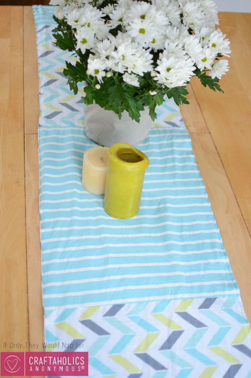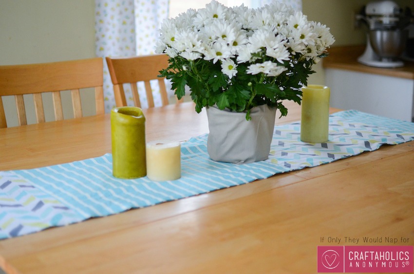 Jess from If Only They Would Nap here, and spring has finally showed up in the Midwest! (Can you hear me singing for joy??) So I decided to give my table a fresh look for the new season with a simple spring table runner. Find some spring fabrics, and you’ll brighten up your kitchen in no time!