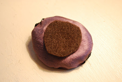Use a low heat glue gun and glue a small piece of felt to the back of the flower. Singed flower is done! yay!