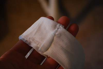 Next, using your low heat glue gun, glue the ribbon around the seam to finish the ends (and cover my lovely crocked seams :)
