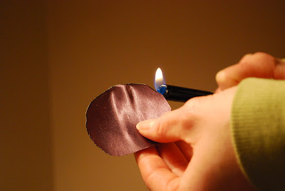 Use your lighter and singe the edges of all your circles. Be sure to be aware of what is around you so that you don’t start a fire :)