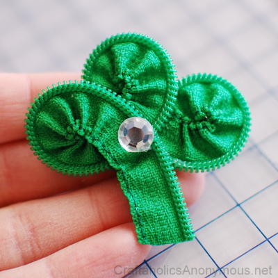 Zipper Shamrock Tutorial. This adorable little zipper craft is easy to make and can be used in so many different ways from hair bows to brooch pins to gift toppers!