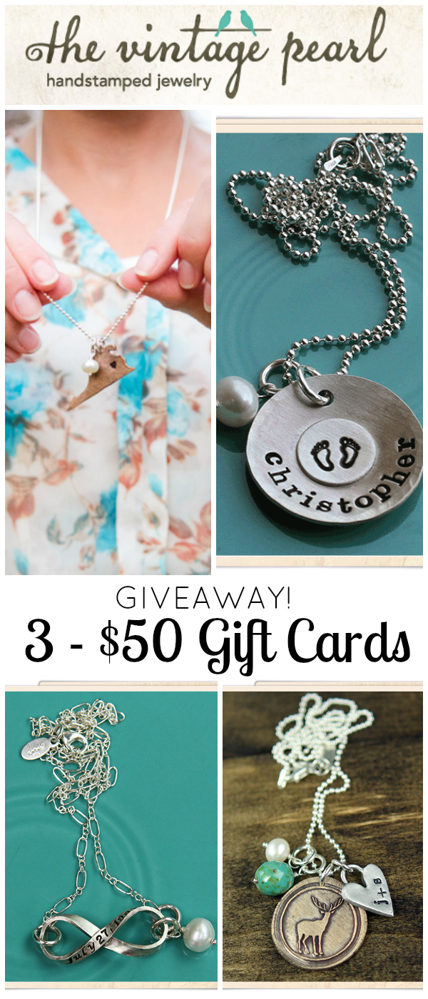 3 Super Lucky Readers will each win a $50 Gift Card to The Vintage Pearl! Use the giveaway widget below to enter. Giveaway ends 9/10/14 at Midnight.