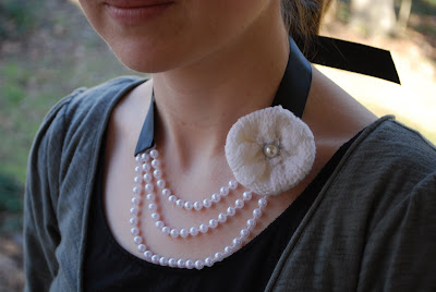 I wouldn't have thought to pair a sweater flower with pearls, but I really love the effect! Love your style!
