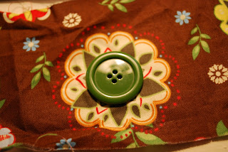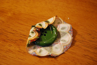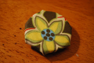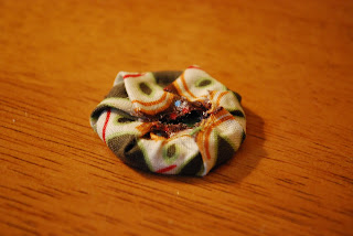 While the glue is still warm, flip over the button and press down (on a protected surface, learn from my mistake:) to flatten the fabric on the back.