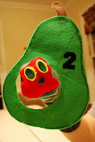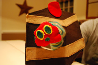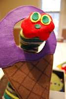 The hungry caterpillar gets to eat his way through all the felt foods.