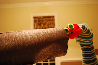 Just wanted to show off this rad gift a couple of my friends made for my little man’s 1st Birthday. I thought it was such a clever idea. And of course little man loves it! It’s a puppet with props for The Very Hungry Caterpillar book, complete with a cocoon. How cool is that?