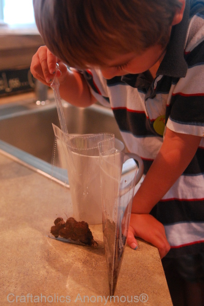One of his favorite parts was using an eye dropper to add water to the dirt.