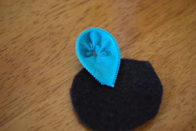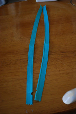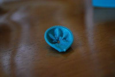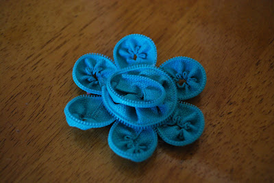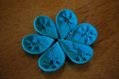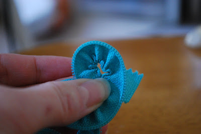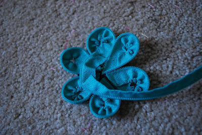 singe/fray check the ends and glue in a circle in the center of your flower like i did on my previous zipper flowers.
